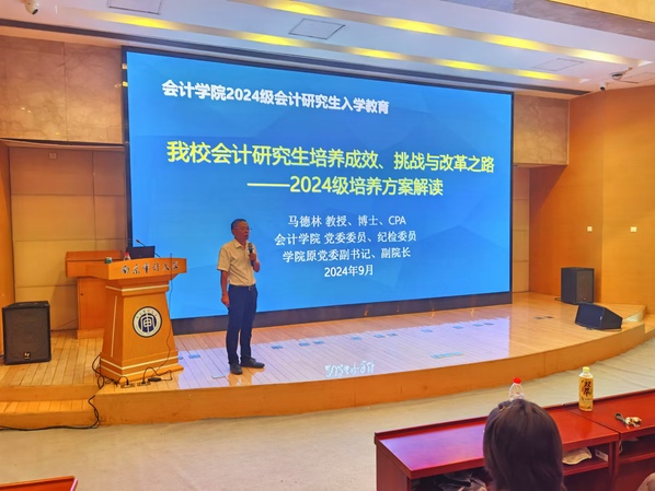 为帮助研究生尽快了解培养目标、培养方式、课程设置,2024年9月6日下午,公司党委委员马德林教授在敏达楼学术报告厅二楼给2024级研究生新生作题为“公司会计公司产品成效、挑战与改革之路——2024级培养方案解读”讲座。云顶国际8588yd2024级全体硕士研究生参加。