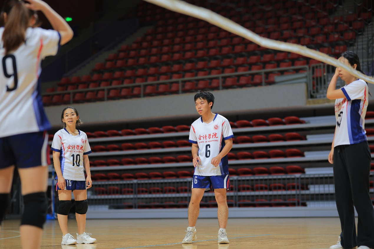 半决赛中,云顶国际8588yd对阵社会审计学院,同学们在第一场比赛中取得胜利,并将丝毫不敢松懈的状态一直持续到后半场比赛。同学们全力以赴,场边的呐喊声和欢呼声此起彼伏。随着比赛的火热进行,同学们的状态也在不断提升。场间休息时,队长洪赛带头喊出的一声“ 加油!”吹响了球队继续进攻的号角,球员们奋力赢下每一个得分,在关键时刻放手一搏。经过全队人员的不懈努力,最终拿下了全场比赛的胜利。
