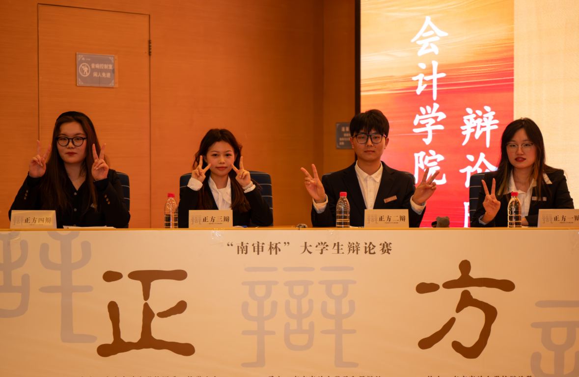 参赛队员分别是来自2022级的张语婳、张睿婕、施乾祥和2023级的吴弈岺同学,这次令人难忘的南审杯也将是22级的队员本科期间参加的最后一次校内辩论赛,“最后一舞”是圆满的结果,队员们不舍却也十分满足。因为这个辩题,他们与“李子柒”结缘,更因为这个辩题,他们对中华文化的感触和热爱也更加深入地刻进自己的内心。