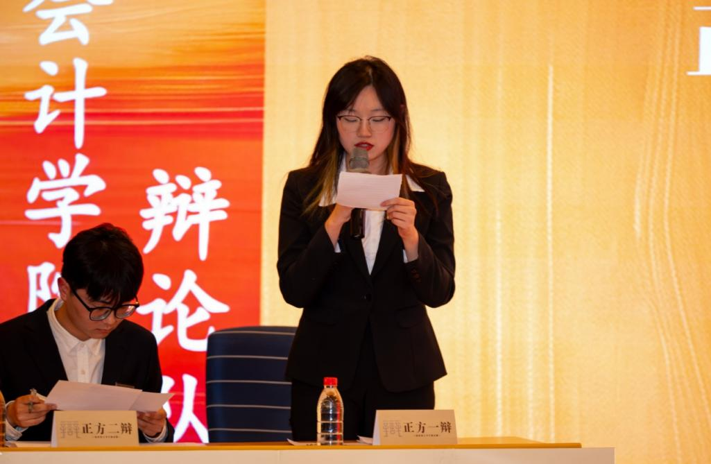张语婳(一辩,2022级会计2班):敏知楼516的灯光明亮,键盘敲击声与笔写在纸上沙沙声成为了独特的旋律,在备赛的许多个日夜里,在反复推翻的框架中,藏着我们对中华文化传播的思考。在打完模赛的一个夜晚,我们一起观看了李子柒的视频,当看到李子柒的布鞋踩过晨露浸润的田埂,我们都为之感到动容,发现原来李子柒视频里的笔墨纸砚都是时光沉淀的琥珀,封存着东方文明最本真的温度。有温度的是烟火气的生活,而华夏文明就是根植于我们每个平凡人的生活所开出的最璀璨的那朵花,如今,这朵花载着千千万万个人的情感乘着巨轮远航,传播着它的可贵,但在中华文化远征时,我们还要记得点亮归乡的灯塔。当我们用温良接续温良,用真心唤醒真心,那些散落在岁月长河里的文化碎片,终将在某个晨曦里,化作连通世界的虹桥。