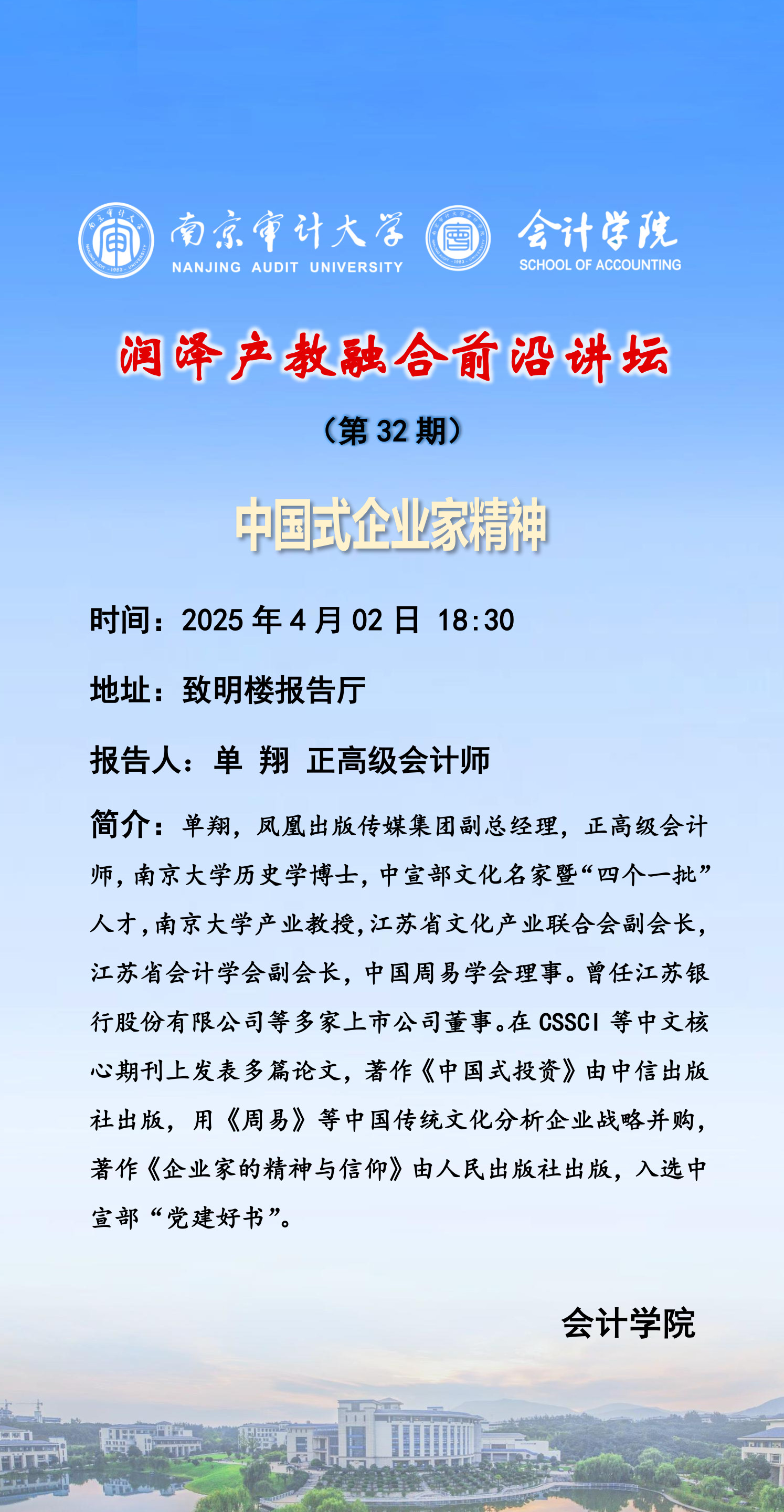 润泽产教融合前沿讲坛(第 32 期):单翔——中国式企业家精神
