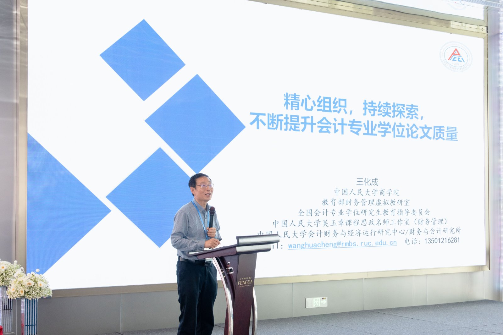 王化成教授以“精心组织,持续探索,不断提升会计专业学位论文质量”为主题发表演讲。他指出,会计专硕论文质量提升是人才培养的关键环节,重点参考会计专硕学位论文评价要素,从选题、内容、成果等维度细分指标,为论文质量评价提供了清晰指引。选题强调源于会计财务实践的有价值问题,内容注重理论与文献综述、研究方法的科学性,成果突出结论可靠性与创新性。构建论文与实践成果匿名评审新机制成为重要议题。同时,为推动产学研深度融合,会议提出充分发挥校外导师作用,严格遴选制度、建立激励与培训机制,深化校企合作,促进校内外导师定期交流,参与研究生培养指导。
