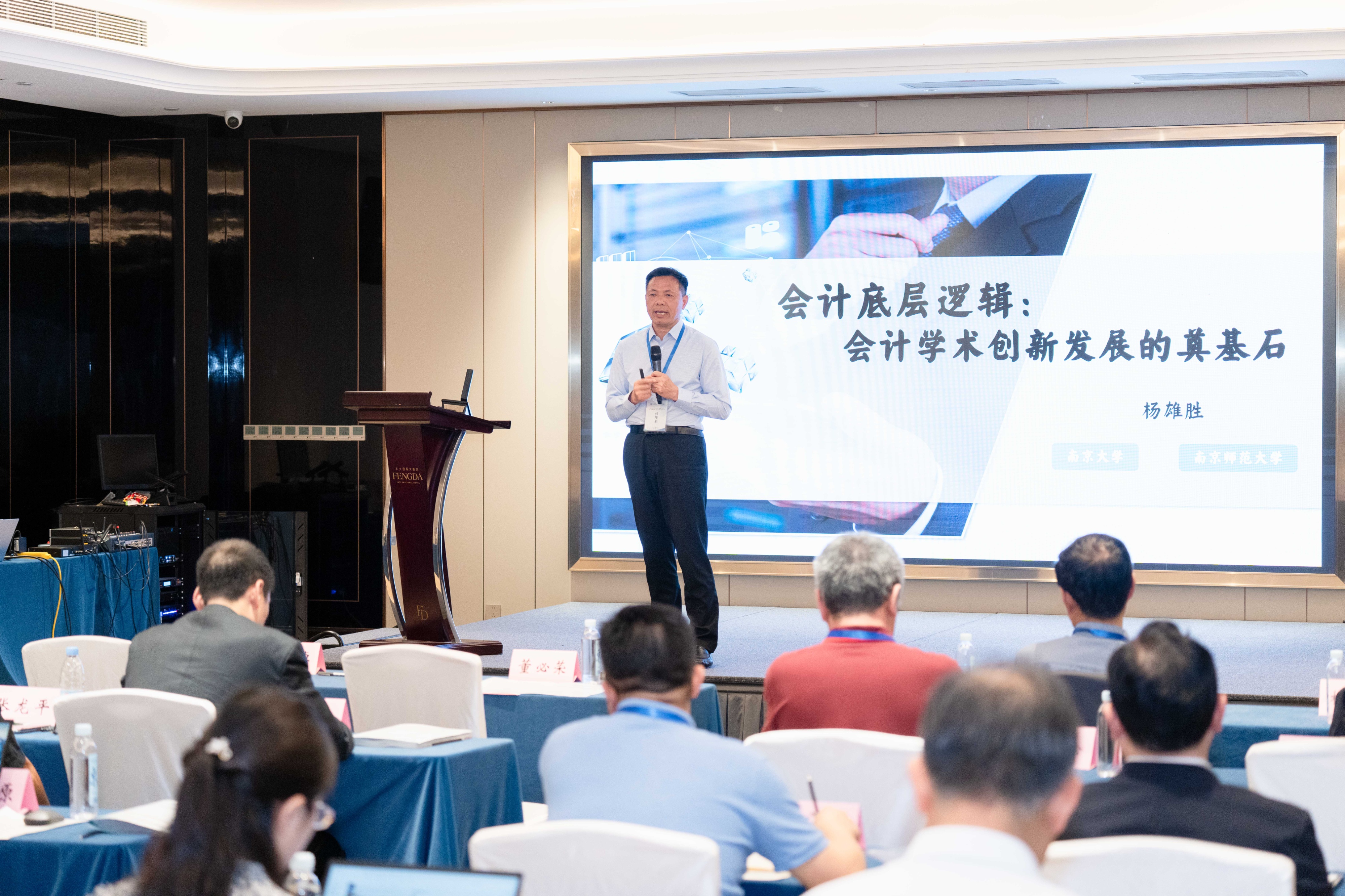 南京大学杨雄胜教授做了题为《会计底层逻辑:会计学术创新发展的奠基石》的主题报告,杨雄胜指出,会计制度作为人类社会的重要组成,需跳出传统框架审视其本质,强调会计不仅是经济活动的“反映控制系统”,更是信息化时代的“神经系统”。他深入剖析会计理论基础,提出会计对象应关注“资金运动”与“经济信息流”的双重维度,并对比工业化与信息化场景下会计功能的演变:从滞后证明转向实时优化,从物理因果转向生物互动。针对信息技术(IT)的冲击,他认为新会计需突破货币化碎片信息的局限,构建场景化整体信息体系,为学术创新与国家治理提供支撑。报告为新时代会计理论发展与实践转型指明了方向,引发参会学者和同行的热烈反响。