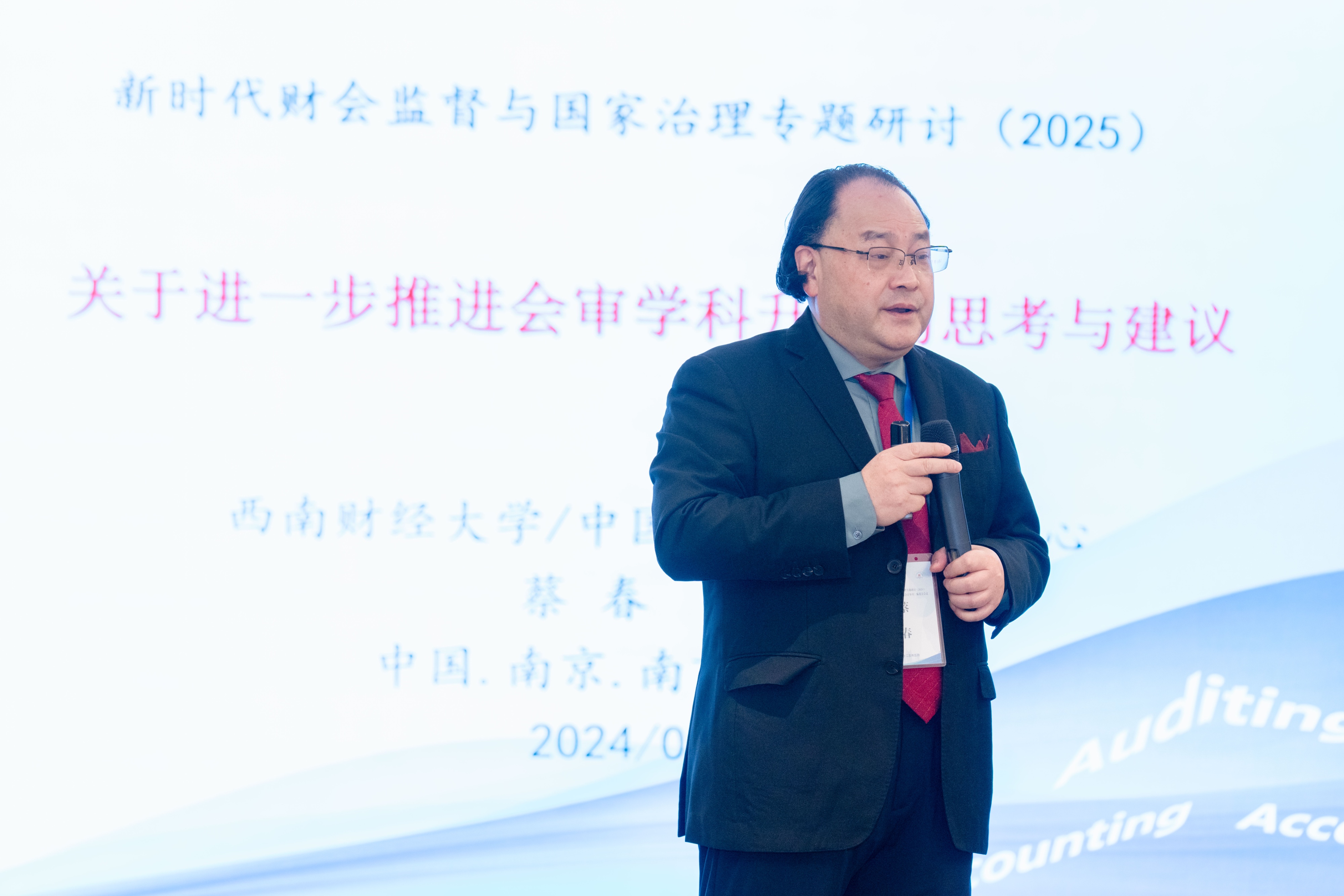 西南财经大学蔡春教授做《关于进一步推进会审学科升级的思考与建议》的主旨报告,蔡春介绍了2022年最新版的学科目录,重点解释了2022年学科目录中新增12个一级学科的原因。认为,会计学科升级为一级学科可能仅一步之遥。接着探讨了会审学科升级一级学科的必要性。认为会计审计均具有独特知识体系,均具有重大的社会需求,经济越发展,会计越重要。随着现代信息技术的变化,强化了新形态新形势会计审计的社会需求。而且,推动新质生产力的发展,对新质态会计、审计提出了紧迫需求。并对会审学科升级一级学科的可行性进行了再探讨。首先,会计审计已升级为专业博士授权学科,这为后续的推动奠定了基础。后续需要做好实践推动,高质量办好会计审计专业博士;后续发展也需要学术和政府推动的合力。其次,进一步提升会计审计服务国家治理重大需求的重要性和不可替代性,需要选择恰当学科门类实现升级。