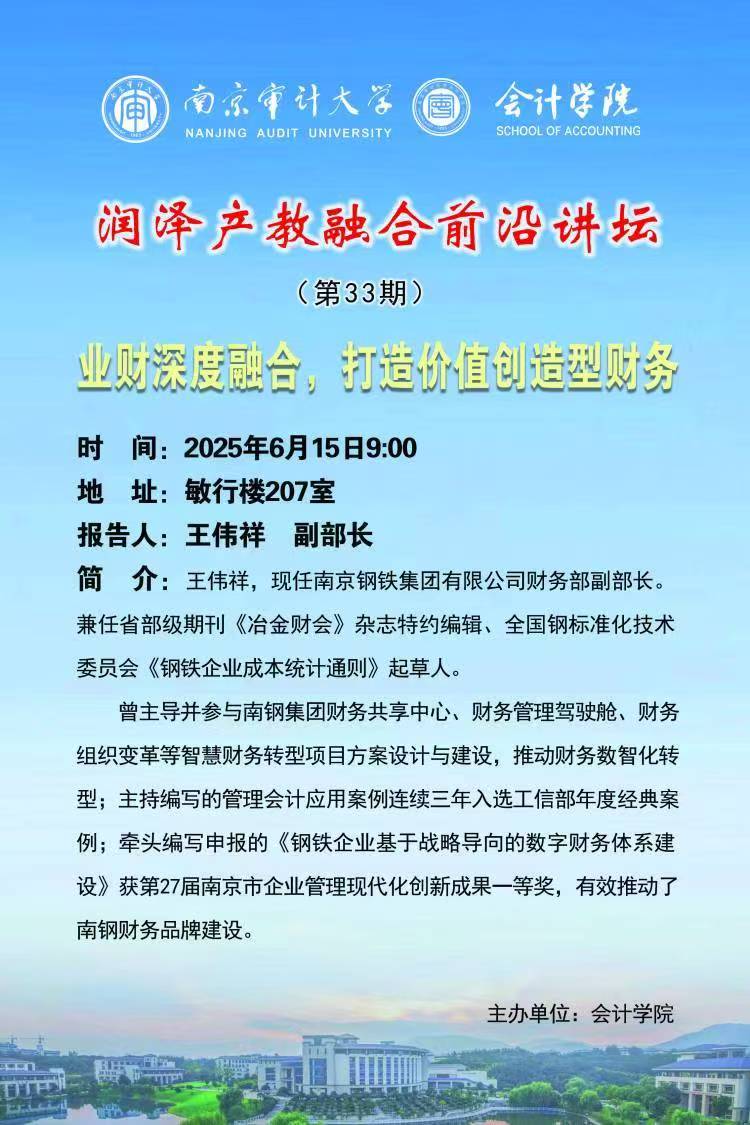 润泽产教融合前沿讲坛(第33期):王伟祥——业财深度融合,打造价值创造型财务