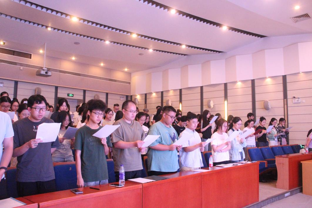 讲座结束后,学院组织了庄严的学术诚信承诺书签署仪式。全体2025级研究生新生肃然起立,以铿锵有力的声音共同宣读承诺书,誓言恪守学术道德,捍卫学术尊严。宣读完毕后,同学们郑重地在承诺书上签下自己的名字,完成了一次精神的洗礼和庄严的承诺。仪式虽短,意义深远。同学们纷纷表示,将牢记今日誓言,坚持以务实严谨的科研态度,努力取得扎实的学术成果,自觉成为优良学风的践行者和学术尊严的捍卫者,以实际行动维护学术环境的清正与诚信。